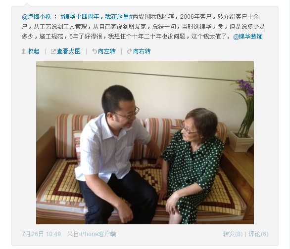 7月26日,烈日炎炎。南京大區工程總監魏總、營銷總監盧總叩響位于西堤國際的錢阿姨房門,送去錦華最誠摯與溫馨的問候.