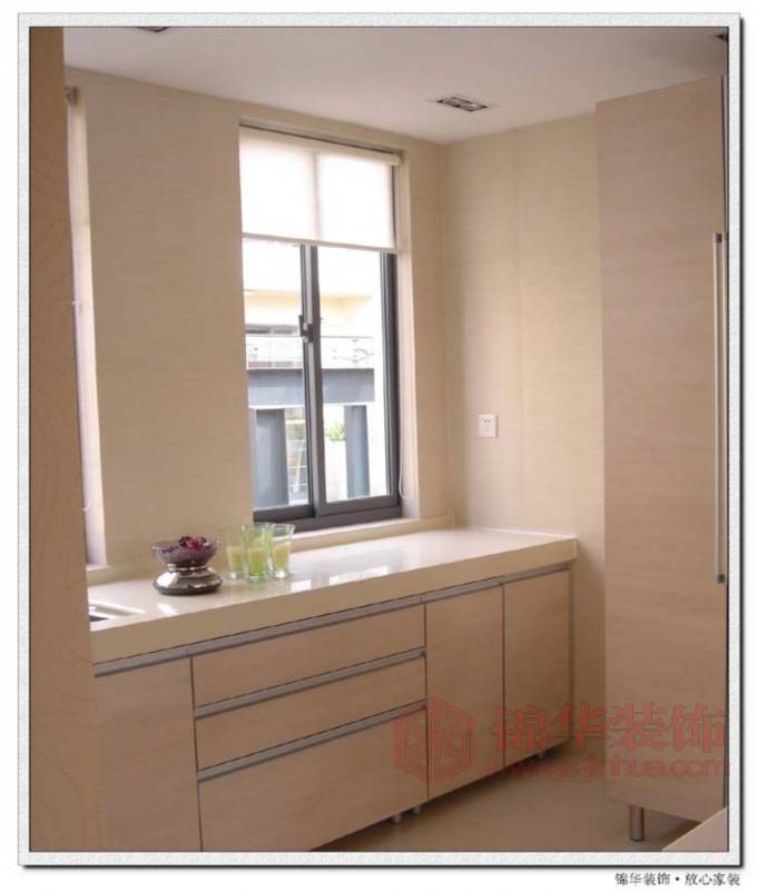 5,地面部分:采用淺色的白臘木地板,陽臺和衛生間采用亞光的羅丹瓷磚。
